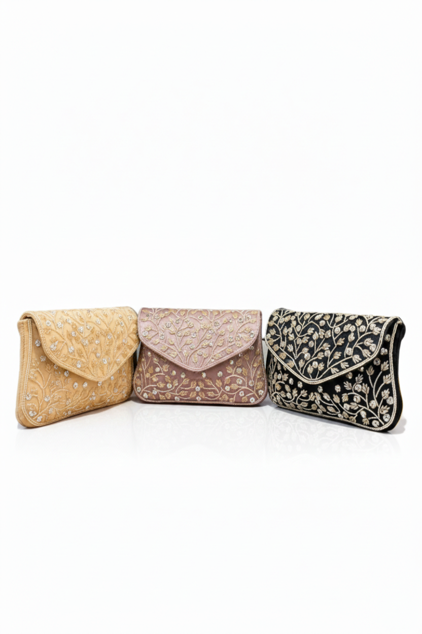 Regal Bloom Embroidered Clutch